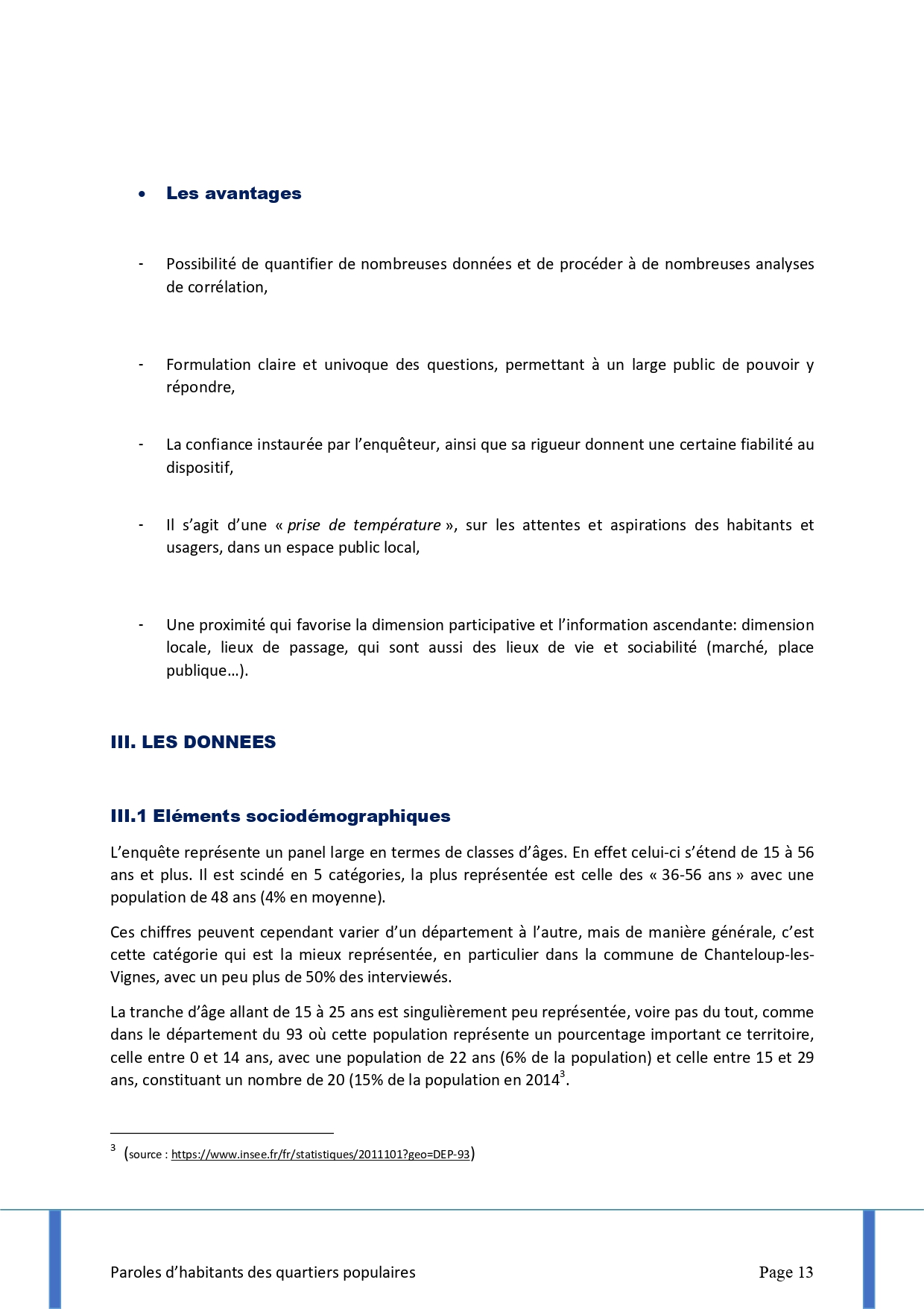 J’ai notamment utilisé la méthodologie sociologique enseignée au CNAM dans le cadre d’ études de terrain.