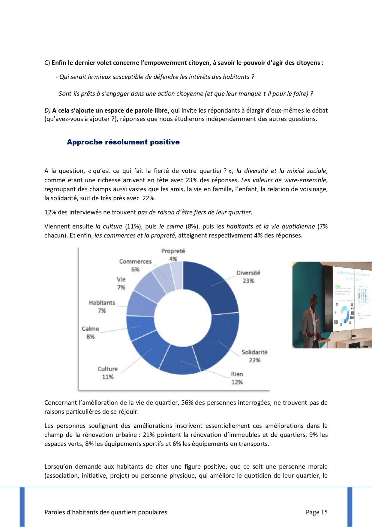 Mon rôle s’est résumé à la rédaction du rapport, dans le cadre de mes fonctions de rédactrice et d’écriture publique (Copyright p.4);